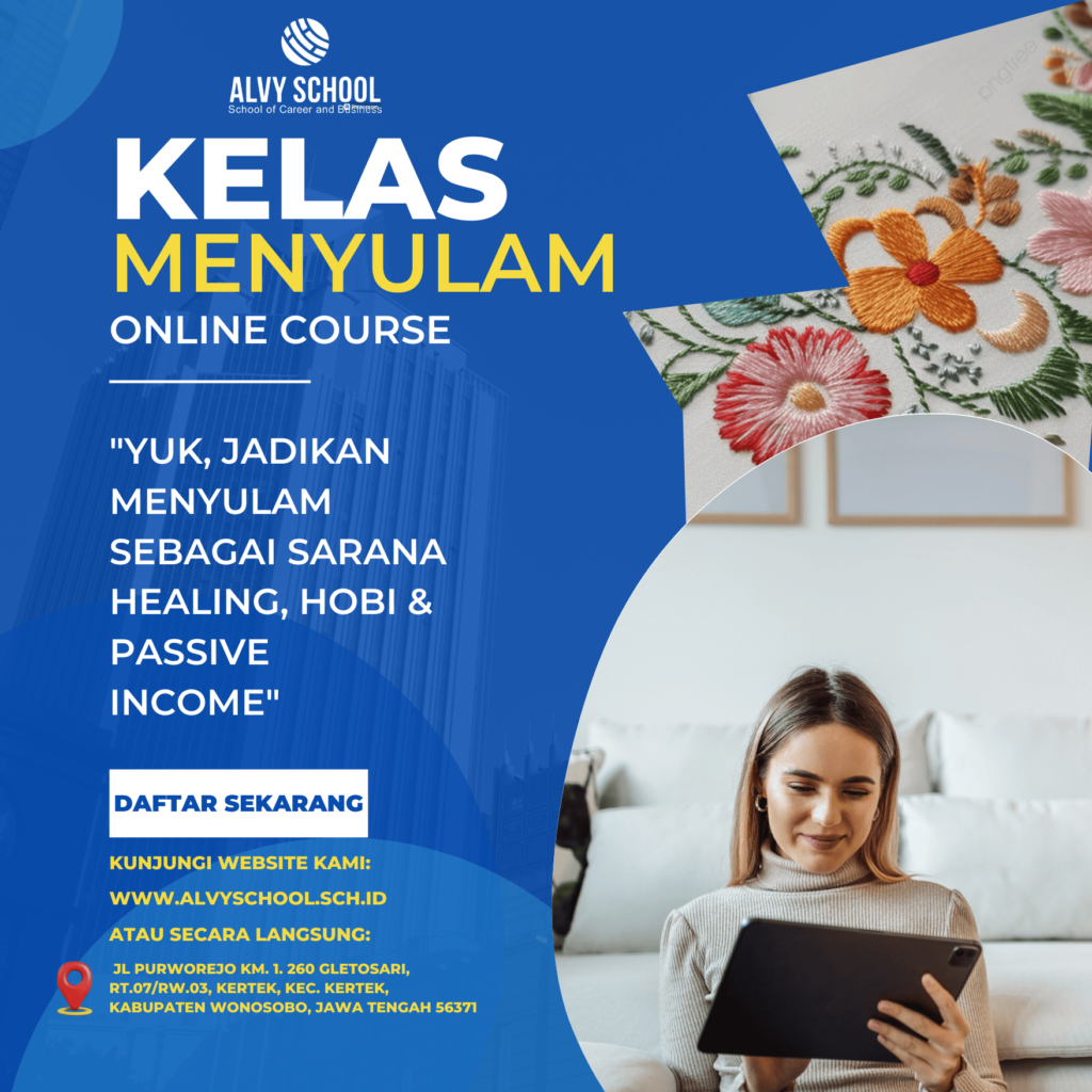 Kelas ini hadir untuk kamu yang ingin menambahkan atau meningkatkan keterampilan sulam kamu. Kegiatan menyulam selain untuk mengisi luang, healing juga bisa menjadi passive income loh..