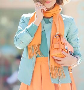 Jika ragu memadukan warna cerah, gunakan aksesori seperti syal, tas, atau sepatu untuk menambahkan sentuhan warna pada busana Anda.